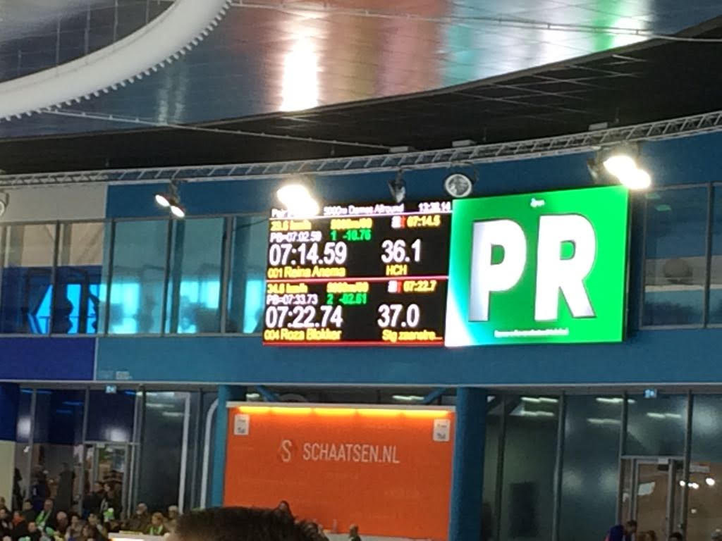 De 5000 meter werd een solide race met een langzaam oplopend schema in een nieuwe toptijd van 7:22,74. Dit is een verbetering van bijna 11 seconden van haar eerder dit jaar gereden 7:33,73 tijdens de Gruno Bokaal in Groningen. En tevens een clubrecord!!!Het oude clubrecord stond met 7:30.33 sinds 16 januari 2000 op naam van Marieke Wijsman.