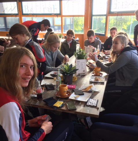 Zondagochtend weer ontbijt en lunchpakketten maken voor nog een dag trainen. Maar daarna het ergste: alle bedden moesten weer opgeruimd worden en er moet gepoetst worden. Iedereen deed goed zijn best waardoor op tijd naar de ijsbaan konden vertrekken voor de volgende 2 trainingen. Mijn complimenten!