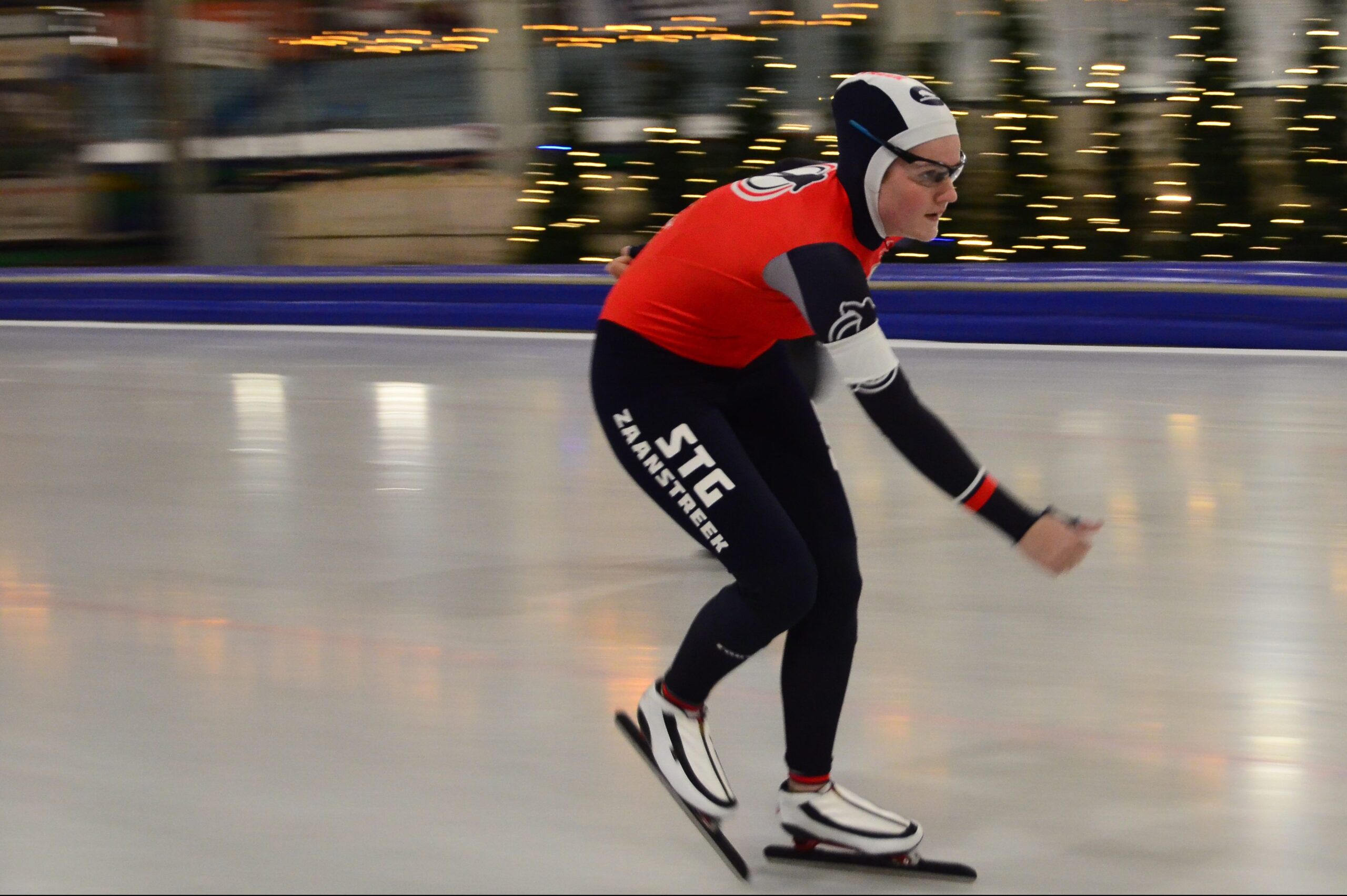 Even inwerken en snel het ijs op. Omdat Nienke haar tijden bij de minder snelle behoort, zat ze in de eerste ritten. Het ijs had geleden onder een vlak er voor gehouden “Elfstedentocht” en was niet super. We hadden afgesproken ons te richten op aanscherping van Persoonlijke Records. In een deelnemersveld met meiden Junioren B die inrijden op de Tacx en PR’s hebben staan rond en zelfs onder de 40 seconden, hoef je verder geen illusies te hebben.