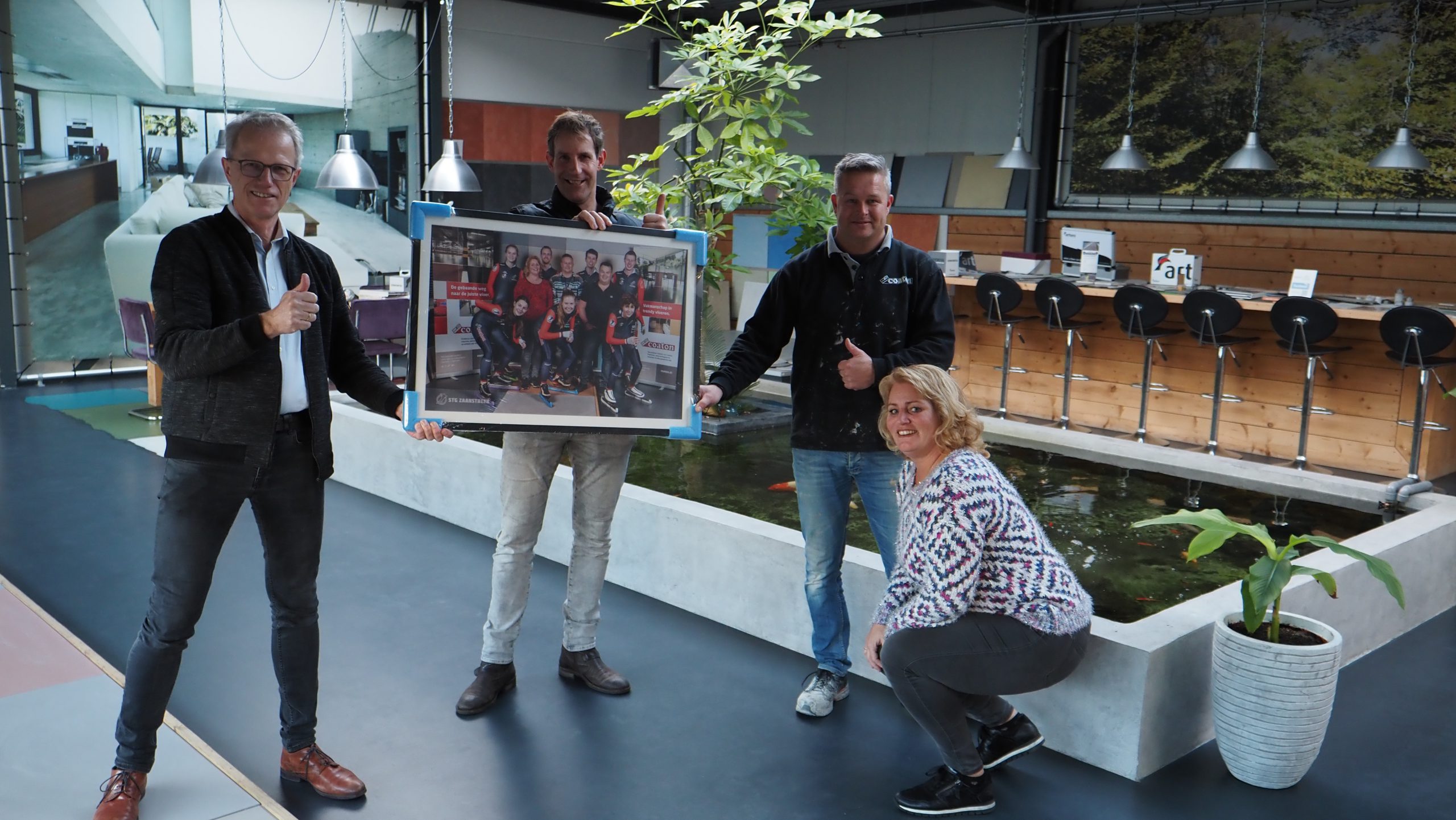 Voorzitter Kees Waqué heeft namens het bestuur afgelopen week een mooie sponsorfoto overhandigd, die gemaakt is bij het uitreiken van de pakken. Gelukkig was de lijst groot genoeg om hierbij 1.5m afstand te houden 😉