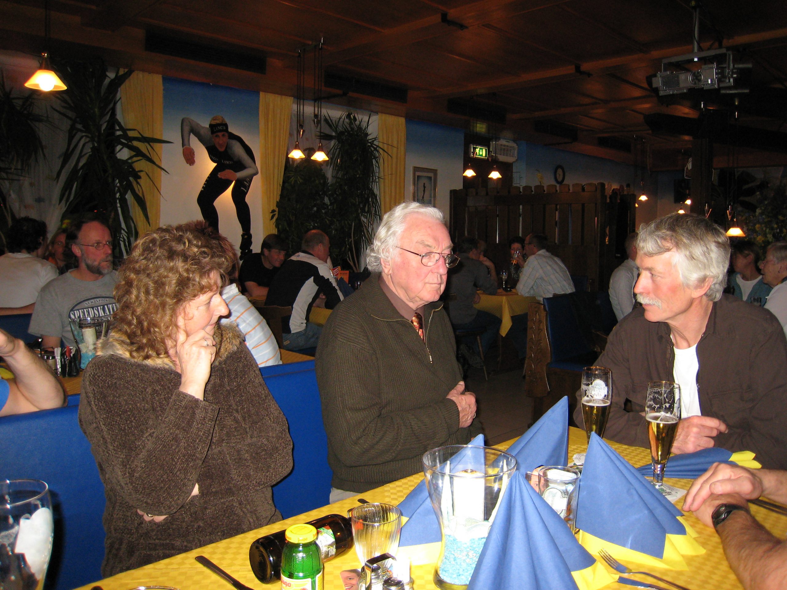 Kees is vele jaren een graag geziene gast geweest bij de vereniging. Hij heeft de Elfstedentochten gereden, maar ook langebaanwedstrijden in Amsterdam, Heerenveen en Haarlem en marathons tot zolang het kon. De speaker van dienst, Ben Verduin, had altijd een vaste aankondiging voor Kees, “Wat Kees Kan, kan Kan alleen!” Verder ging Kees ook graag mee naar Inzell en ging voorop bij het Langlaufen (foto rechts 2007). Op de foto midden aan tafel in Inzell met Fenna (rechts).