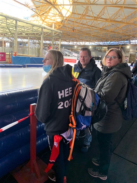 Aangekomen op de ijsbaan begon de spanning bij rijders en meegereisd publiek toch wel te komen. Maar daar is voor de rijders een coach om dat weg te nemen en het publiek moet zijn eigen nagels afbijten. Nadat alle materialen door de jury waren gecontroleerd en nog even de trotse ouders en ook opa en oma opzoeken, waren de rijders en coach er klaar voor.