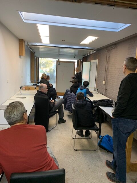 Na een warm welkom met koffie, thee en verschillende lekkere koeken kon de cursus al niet meer stuk. Toen iedereen bij een slijpblok had plaatsgenomen, volgde eerst een stukje theorie over de schaats, het ijzer, de ronding, een braam en scherpte. Daarna de praktijk: hoe slijp je en wat heb je nodig om uiteindelijk de meegebrachte schaatsen goed te slijpen? Na ongeveer een anderhalf uur zat de cursus er op en zijn er de nodige materialen aangeschaft en volgde er een rondleiding door de winkel en werd nog even nagepraat kon worden over alles wat met schaatsen te maken heeft. Al met al een hele geslaagde ochtend met veel nuttige informatie.