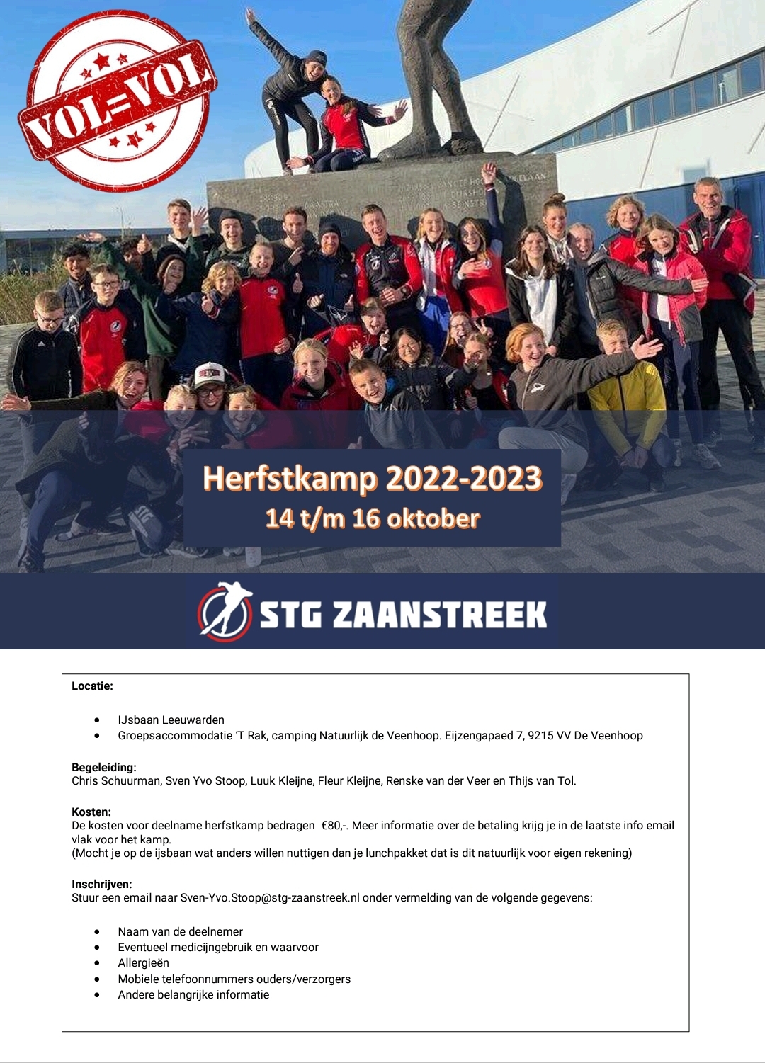 In de herfstvakantie gaan we op schaatsherfstkamp met STG-Zaanstreek dat is altijd heel leuk!! Sinds dat ik op schaatsen zit ga ik mee op herfstkamp, dat is al 6 jaar. Vrijdags eind van de middag gaan we om 18.00 uur vanuit Zaandijk naar de kamplocatie. Vroeger gingen we naar Dronten sinds verleden jaar gaan we naar Groningen toe. Als we aankomen op de locatie gaan we kennismakingsspelletjes doen, verleden jaar deden we ook het weerwolvenspel. Dit was super leuk! Daarna mag je je eigen bed uitkiezen en je spullen daar neerzetten. Dan ga je slapen maar eerst nog even keten.