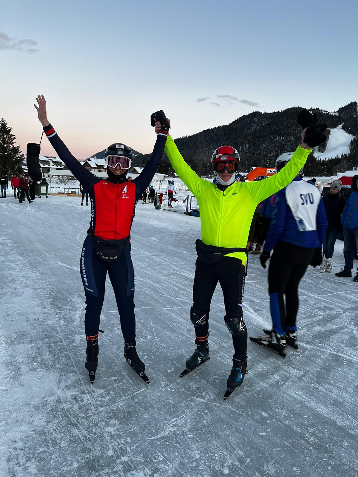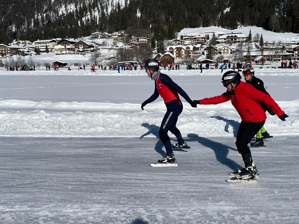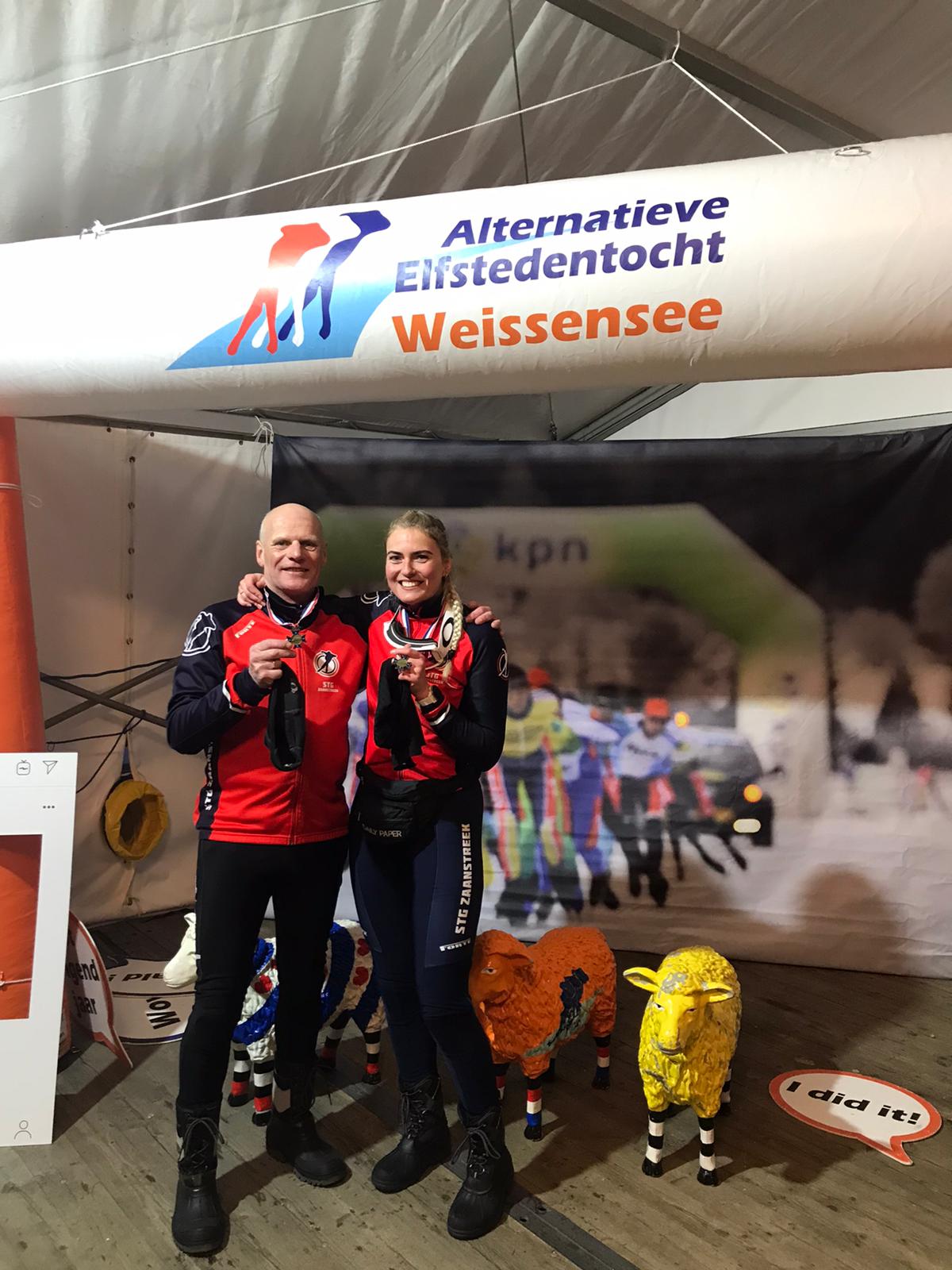 Naast de gekende wedstrijdrijders zijn er meer STG-ers die op Weissensee hun eigen Alternatieve Elfstedentocht rijden. Na eerde afgelastingen door zware sneeuwval was het ijs op 31 januari en 2 februari weer geveegd en was het aan de goed getrainde recreanten om kilometers te maken op het kleine meer van de Weissensee. Op een parcours van bijna 9 kilometer reden Jery Bruinsma en dochter Renske de 200 kilometer en Thor Alpenaar met zijn vrouw Irene kwamen tot 163,3 kilometer. Na een valpartij van Irene ging het niet meer op souplesse en moest Thor de helpende hand bieden. Een mooi stel, dat wel!