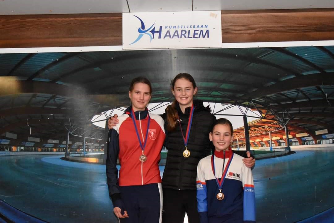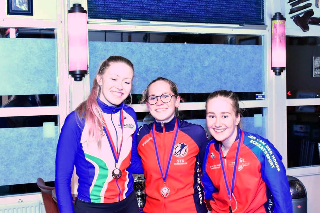 Miel van der Veer (HJA2) reed in de klasse junioren A/Neo’s en zat heel dicht bij zijn pr’s 40.80(2) en 2:05.33(1) gaat leuk worden in Thialf. Ciska de Ree (DSB) deed het goed en verdiende ook punten voor het clubklassement. Bob van Nobelen (HSB) won het goud met 41.72 (2) en 2:11.44 (3) kon wel harder maar spaarde zich voor de ploegenachtervolging.