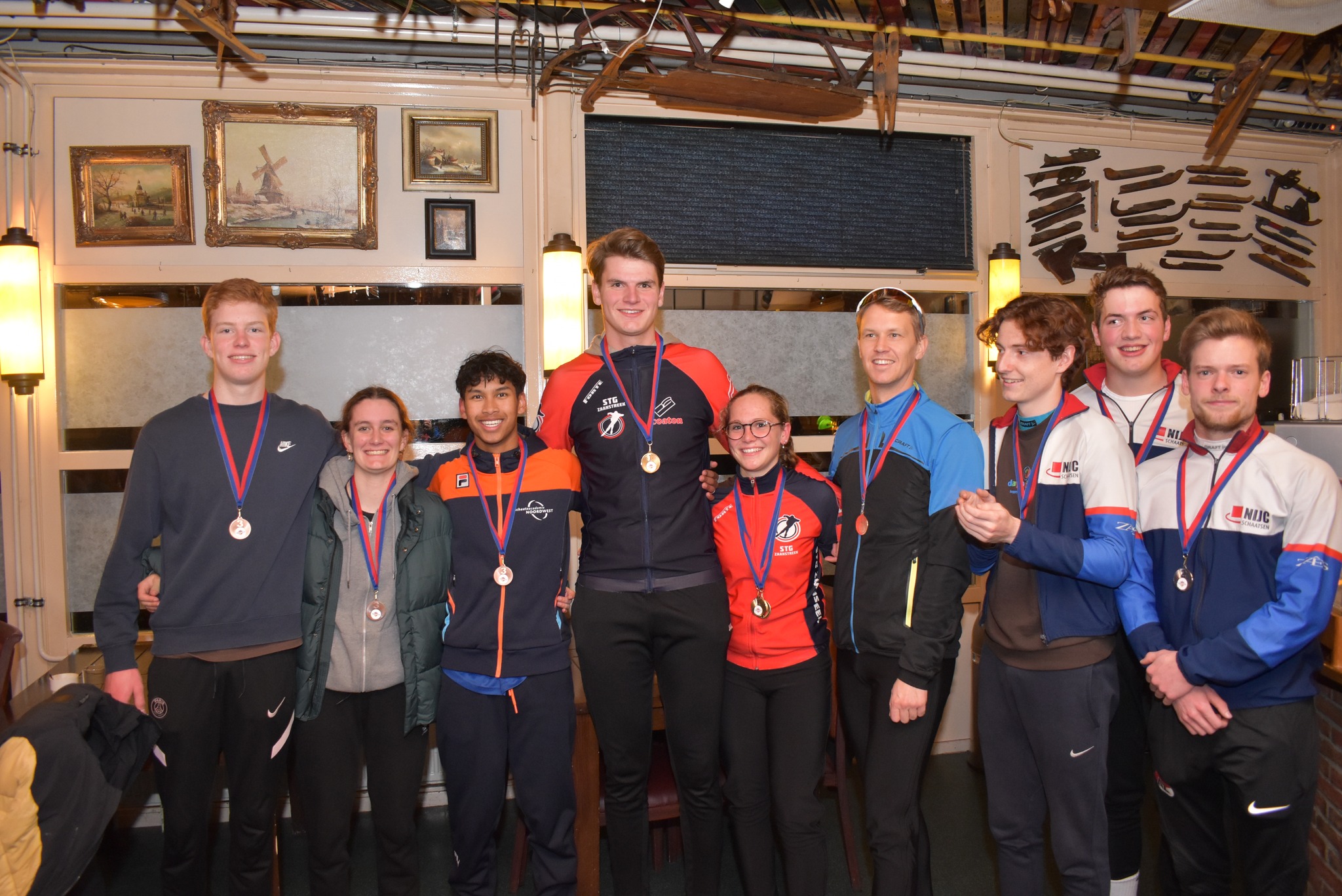 Alle tijden zijn te vinden op de bekende plek dus dat gaan we hier niet doen. Na alle 500 meters een mooie score en stonden we op een zeer verdienstelijke 3de plek. Er werden pr’s gereden en flink wat medailles gewonnen. De meest opvallende? Bij de DPA (ze is nog pup B) ging Melanie Ooms als een speer en werd winnares op beide afstanden. De 500 m in 49.77 en met een pr op de 1000 m in 1:41.49 reed ze een toernooirecord! Mees Olie (HPA) reed pr op de 1000 m in 1:53.24 en sprokkelde ook de noodzakelijke punten mee voor het Zaanse team.